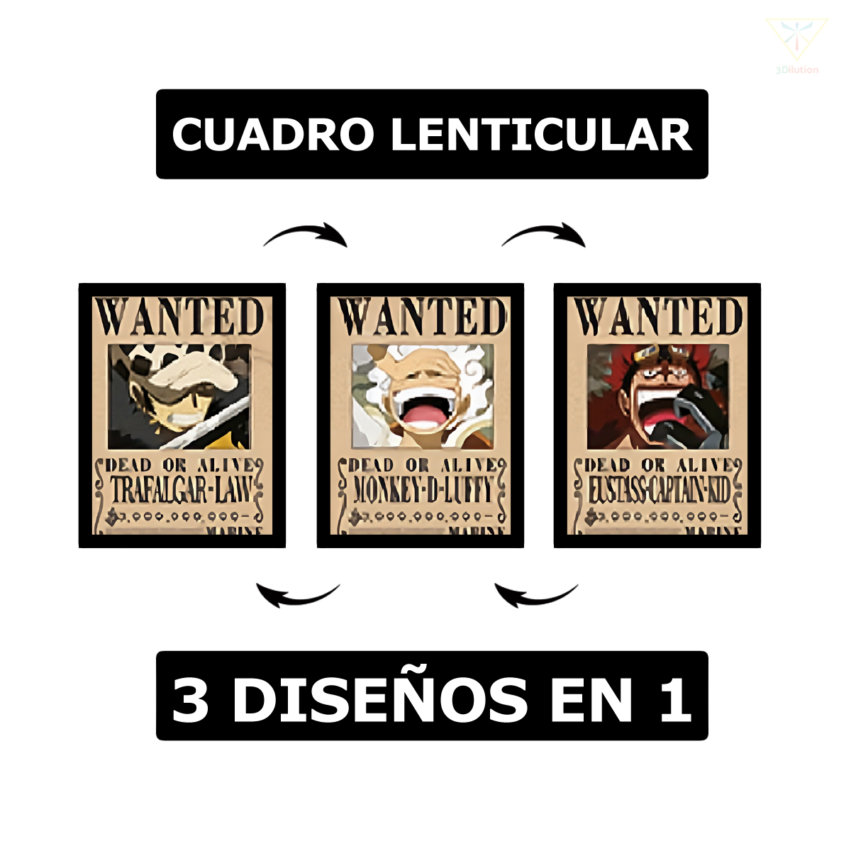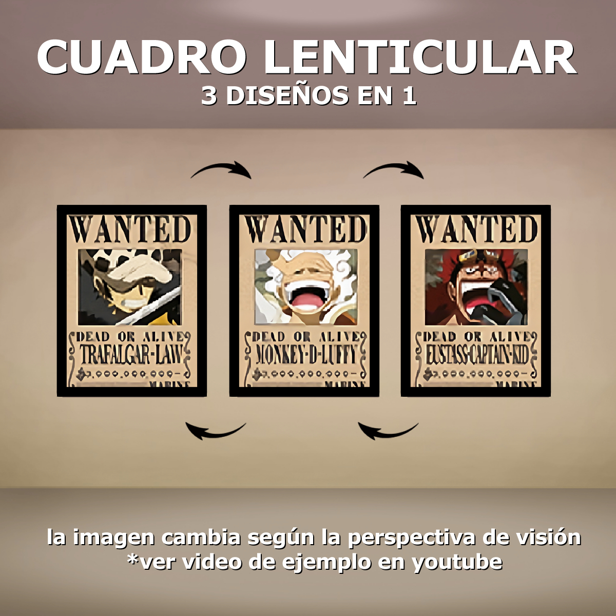 Cuadro Lenticular - One Piece - Se busca Luffy, Kid, Law