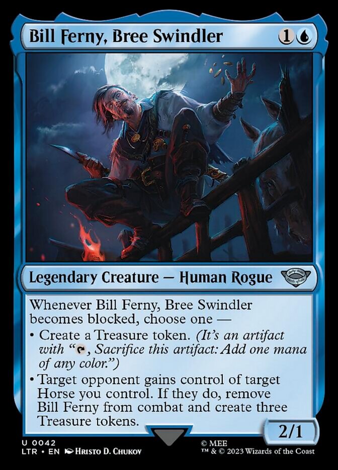 • Target opponent gains control of target Horse you control. If they do, remove Bill Ferny from combat and create three Treasure tokens.Las devoluciones de productos están resguardadas en los derechos del consumidor, teniendo este hasta 6 meses desde la recepción del producto para hacer la solicitud respectiva.