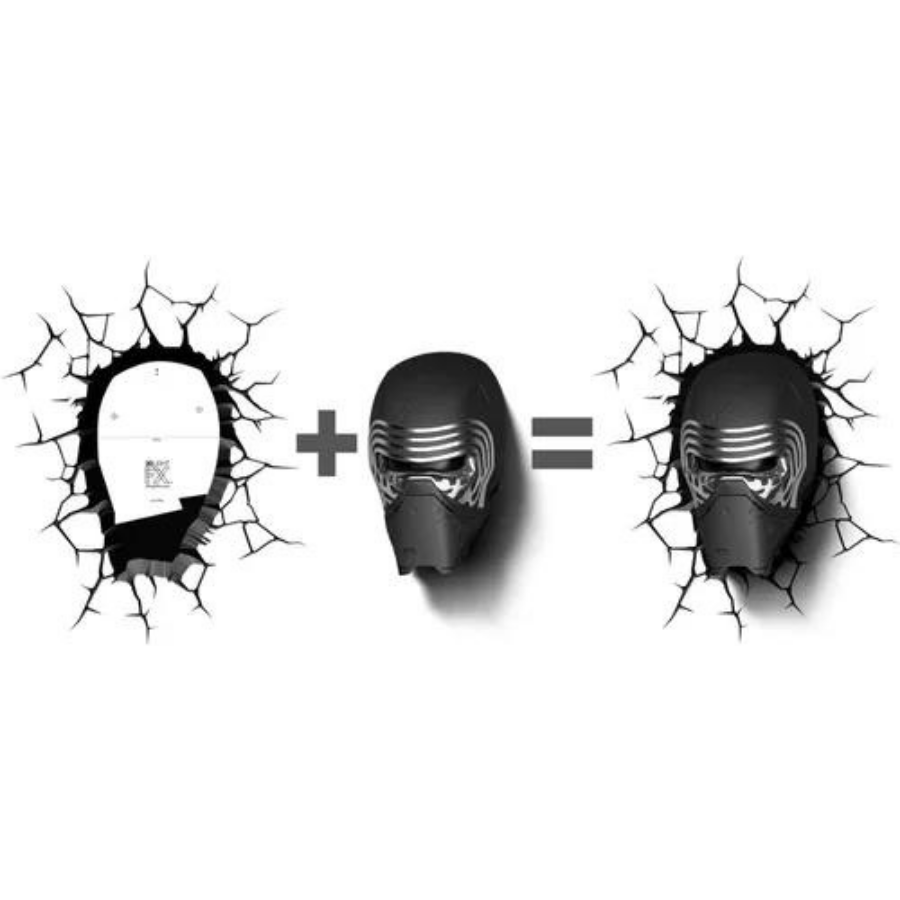 Deco Light Mural 3D Kylo Ren Lamp - The Shadow of the Force in Light . Discover the magic with our wireless decorative wall lights with a 3D crackle effect. Easy to install and safe to touch. Energy-efficient LED lighting that lasts for hours without changing bulbs. Powered by 3 AA batteries (not included).