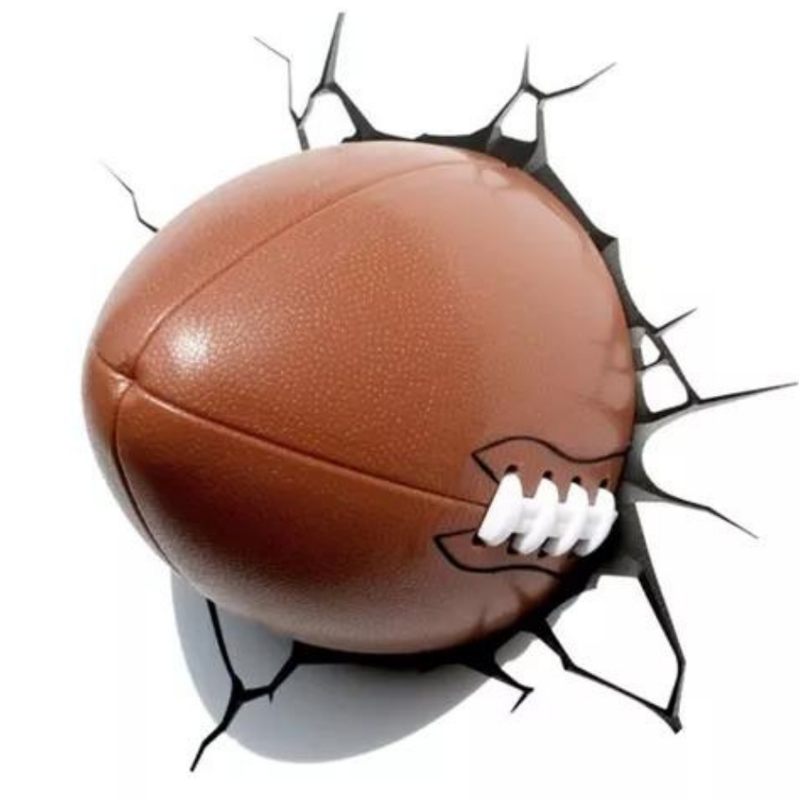 Hurry! Only0units left in stock!Deco Light 3D American Football Wall Lamp - Adrenaline in your room . Discover the magic with our wireless decorative wall lights with a 3D crackle effect. Easy to install and safe to touch. Energy-efficient LED lighting that lasts for hours without changing bulbs. Powered by 3 AA batteries (not included).